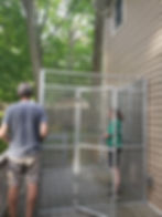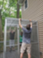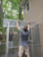 As you can just see from the picture above the custom door is nearly perfectly fit around the window. The custom door swings into the cage while the man door swings outward. One nice touch is that the doors latch from both sides so you can lock yourself inside with the birds which is something I hadn't thought of.